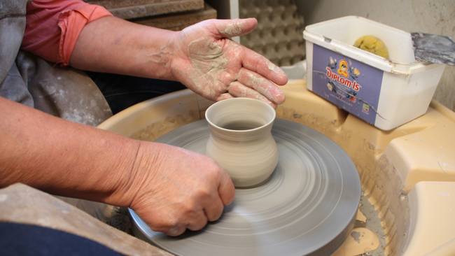 Grethe Othilie Gullaksen makes coffee cups from clay mixed with coffee grounds.